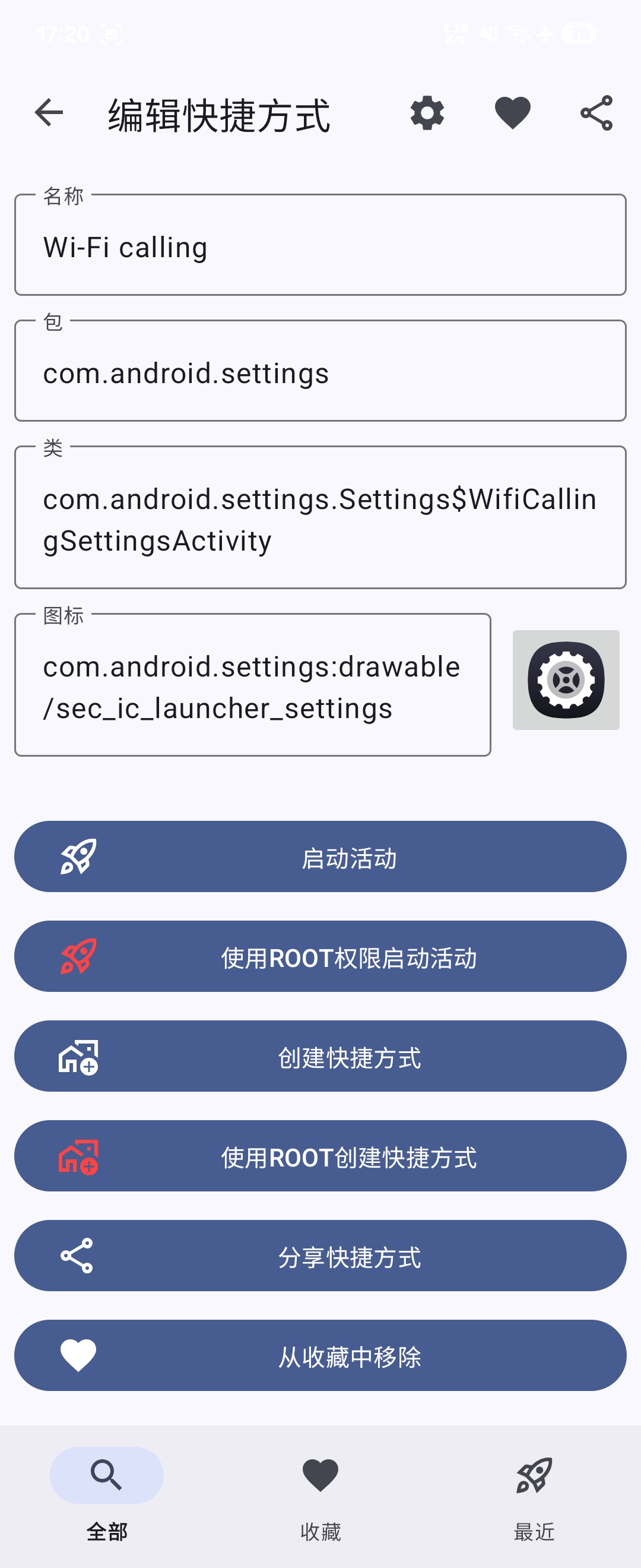 打开软件后进行搜索:com.android.settings.Settings$WifiCallingSettingsActivity
